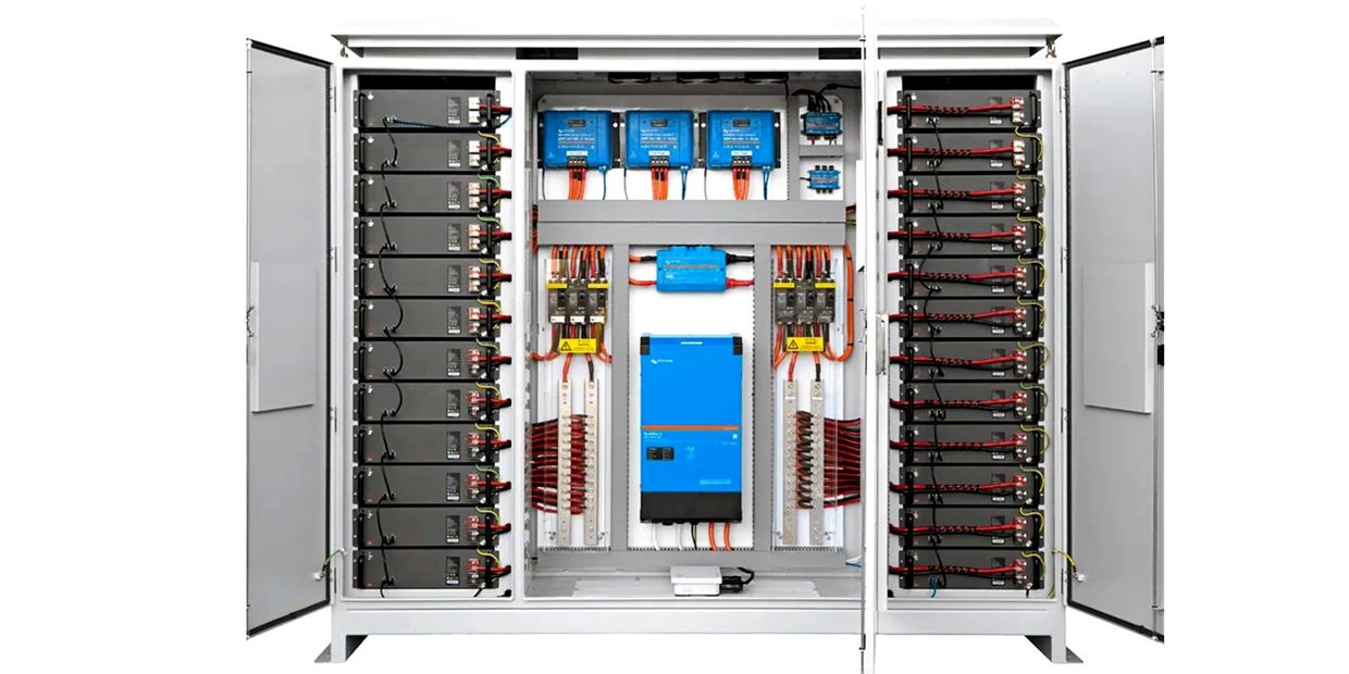 The cabinets are sized to enable mounting of all inverters and charge controllers in the same panel.